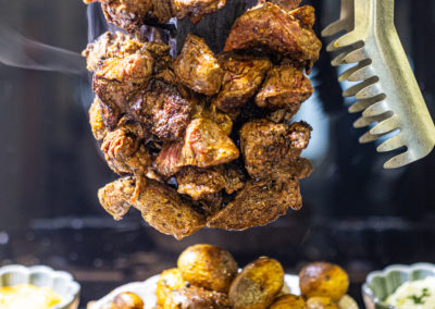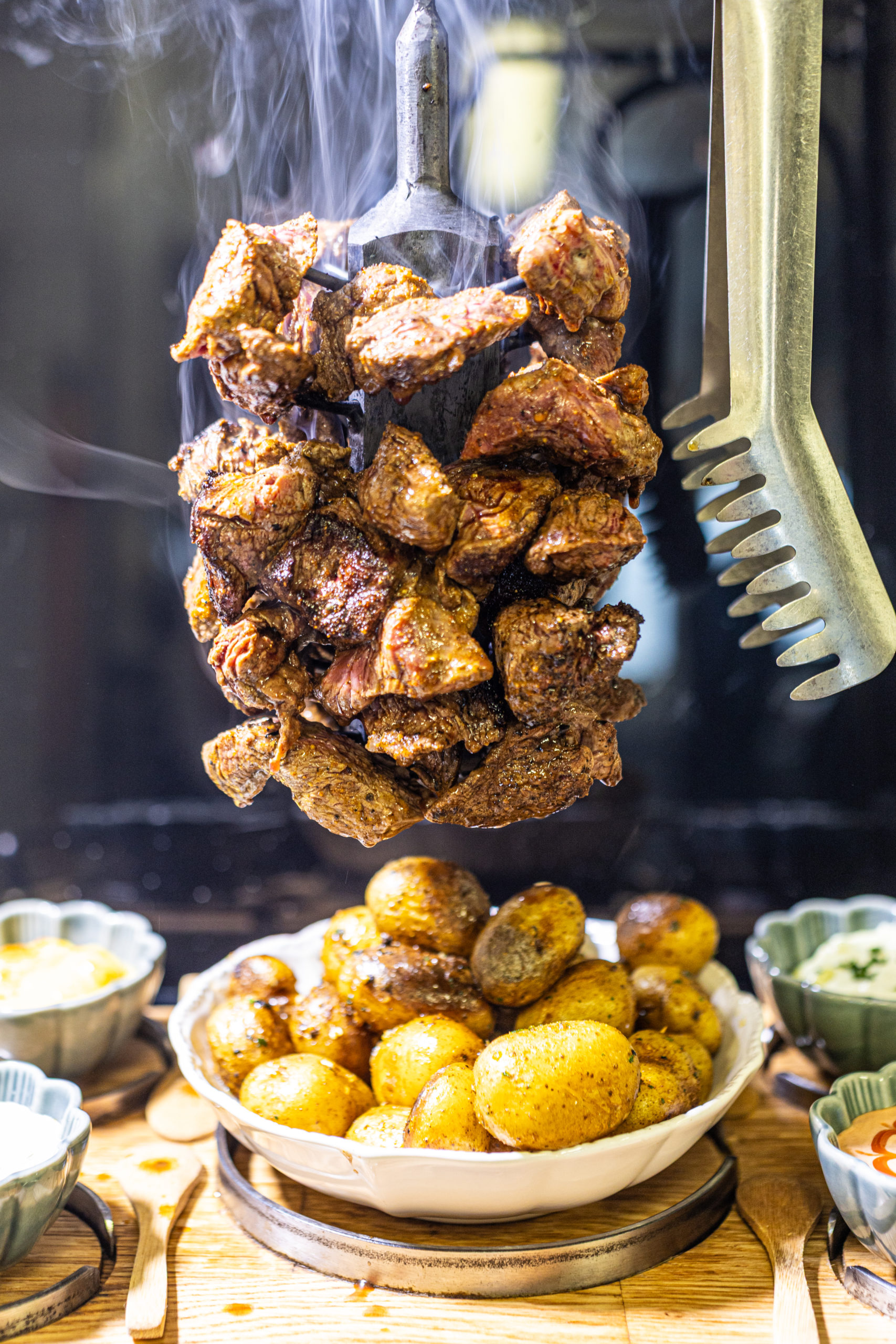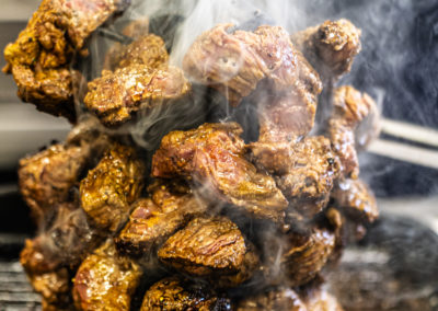 Découvrez notre spécialité : La Potence, un spectacle culinaire unique ! De tendres morceaux de viande, soigneusement marinés, sont suspendus sur une pique et flambés devant vous pour une expérience à la fois savoureuse et spectaculaire. Une explosion de saveurs, sublimée par une touche de feu pour éveiller vos sens.