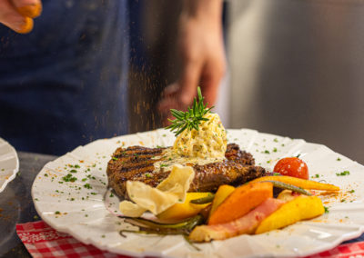 Pour les fins gourmets, notre cuisine propose des spécialités telles que la potence du Marchairuz, des morceaux de filet de bœuf flambés, ainsi qu’une sélection de viandes exquises, préparées avec soin.